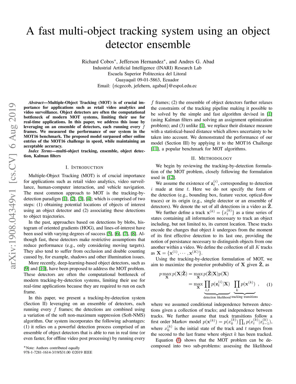 A fast multi-object tracking system using an object detector ensemble
