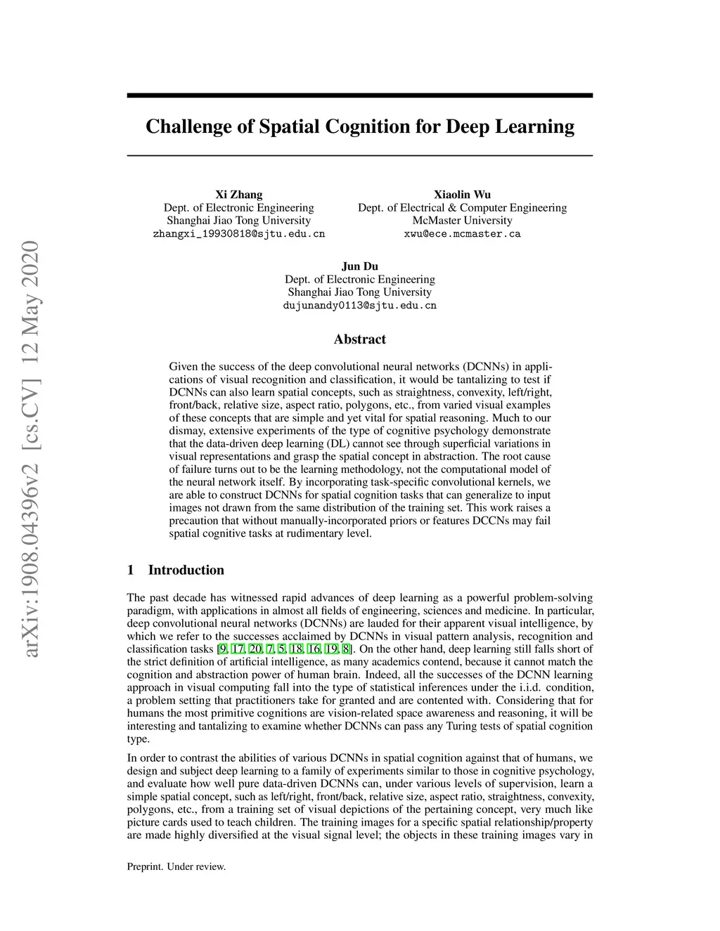 Given the success of the deep convolutional neural networks (DCNNs) in applications of visual recognition and classification, it would be tantalizing to test if DCNNs can also learn spatial concepts, such as straightness, convexity, left/right, front/back, relative size, aspect ratio, polygons, etc., from varied visual examples of these concepts that are simple and yet vital for spatial reasoning. Much to our dismay, extensive experiments of the type of cognitive psychology demonstrate that the data-driven deep learning (DL) cannot see through superficial variations in visual representations and grasp the spatial concept in abstraction. The root cause of failure turns out to be the learning methodology, not the computational model of the neural network itself. By incorporating task-specific convolutional kernels, we are able to construct DCNNs for spatial cognition tasks that can generalize to input images not drawn from the same distribution of the training set. This work raises a precaution that without manually-incorporated priors or features DCCNs may fail spatial cognitive tasks at rudimentary level.