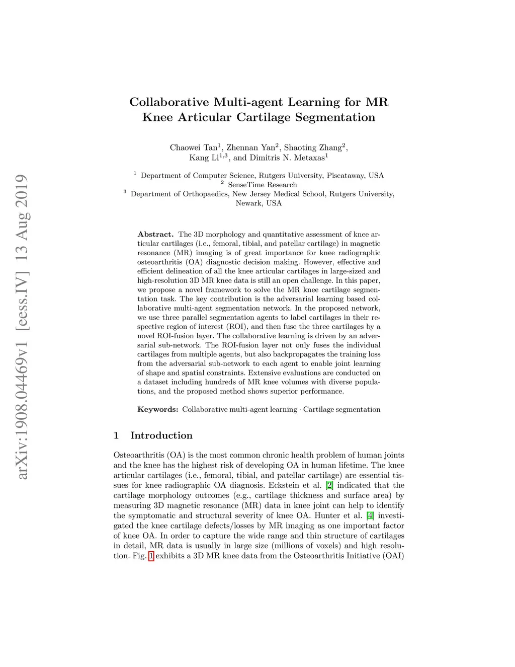 Collaborative Multi-agent Learning for MR Knee Articular Cartilage