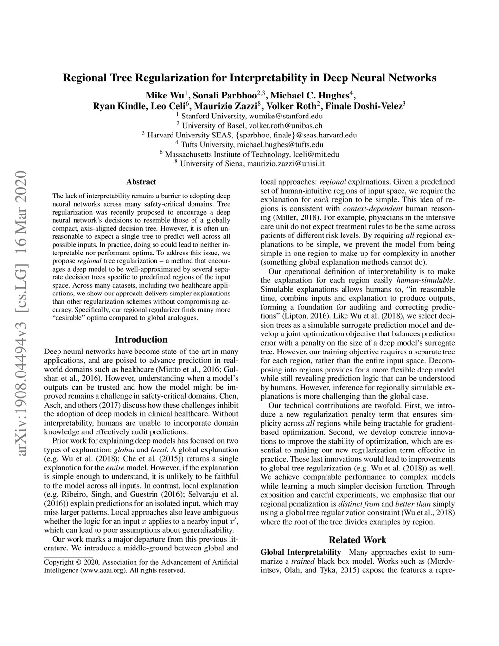 The lack of interpretability remains a barrier to the adoption of deep neural networks. Recently, tree regularization has been proposed to encourage deep neural networks to resemble compact, axis-aligned decision trees without significant compromises in accuracy. However, it may be unreasonable to expect that a single tree can predict well across all possible inputs. In this work, we propose regional tree regularization, which encourages a deep model to be well-approximated by several separate decision trees specific to predefined regions of the input space. Practitioners can define regions based on domain knowledge of contexts where different decision-making logic is needed. Across many datasets, our approach delivers more accurate predictions than simply training separate decision trees for each region, while producing simpler explanations than other neural net regularization schemes without sacrificing predictive power. Two healthcare case studies in critical care and HIV demonstrate how experts can improve understanding of deep models via our approach.