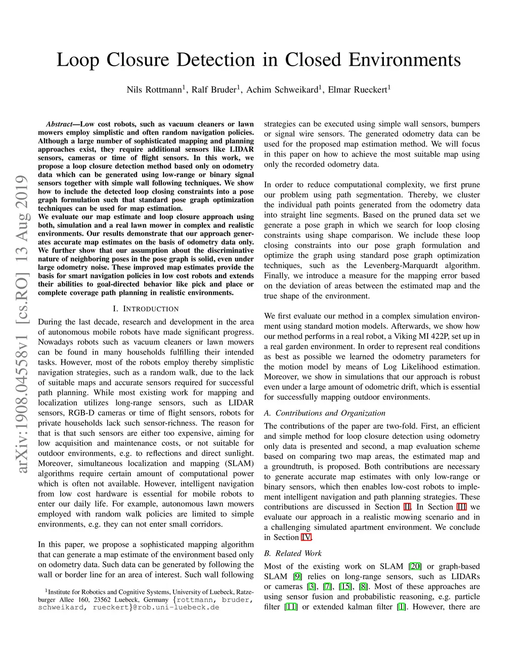 Low cost robots, such as vacuum cleaners or lawn mowers employ simplistic and often random navigation policies. Although a large number of sophisticated mapping and planning approaches exist, they require additional sensors like LIDAR sensors, cameras or time of flight sensors. In this work, we propose a loop closure detection method based only on odometry data which can be generated using low-range or binary signal sensors together with simple wall following techniques. We show how to include the detected loop closing constraints into a pose graph formulation such that standard pose graph optimization techniques can be used for map estimation. We evaluate our map estimate and loop closure approach using both, simulation and a real lawn mower in complex and realistic environments. Our results demonstrate that our approach generates accurate map estimates on the basis of odometry data only. We further show that our assumption about the discriminative nature of neighboring poses in the pose graph is solid, even under large odometry noise. These improved map estimates provide the basis for smart navigation policies in low cost robots and extends their abilities to goal-directed behavior like pick and place or complete coverage path planning in realistic environments.