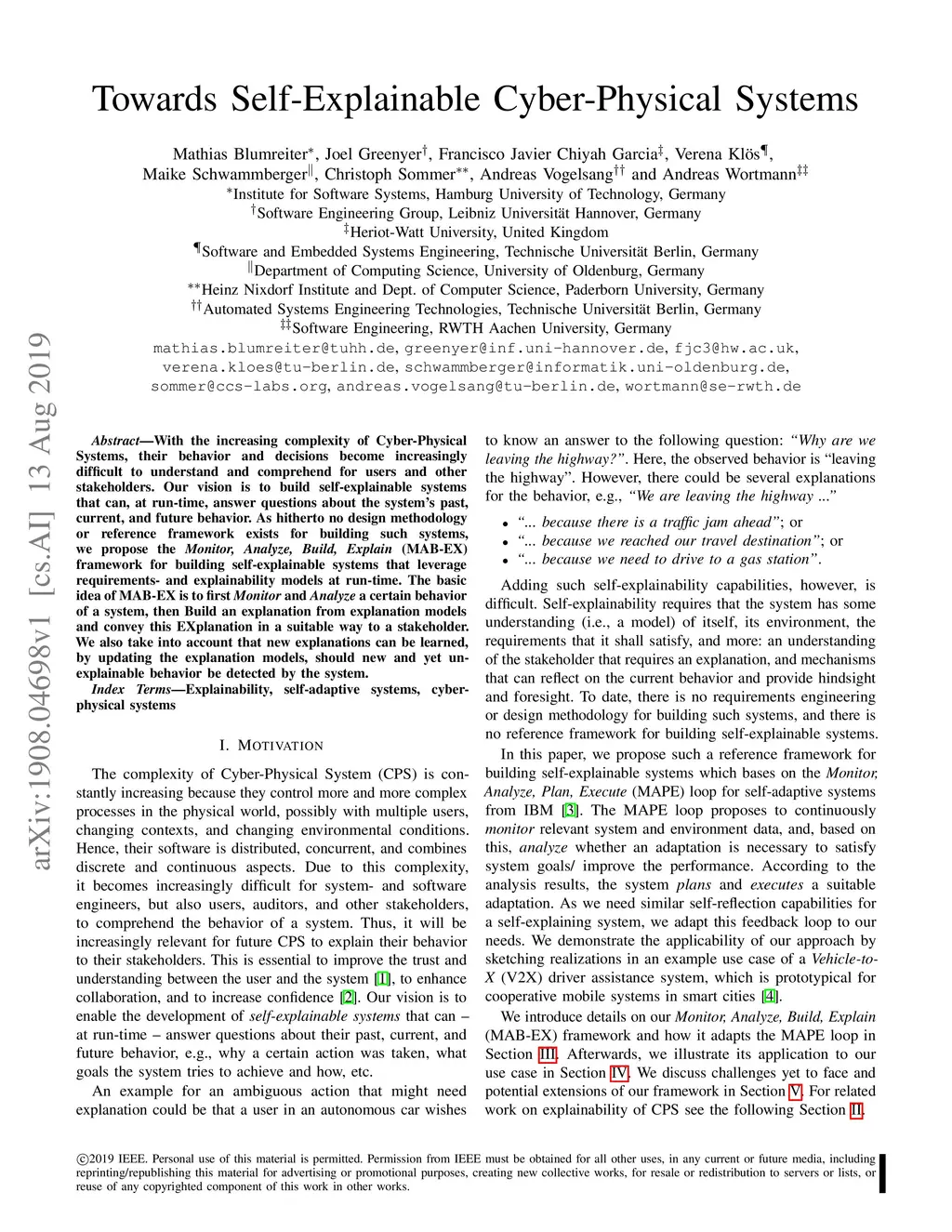 With the increasing complexity of CPSs, their behavior and decisions become increasingly difficult to understand and comprehend for users and other stakeholders. Our vision is to build self-explainable systems that can, at run-time, answer questions about the system's past, current, and future behavior. As hitherto no design methodology or reference framework exists for building such systems, we propose the MAB-EX framework for building self-explainable systems that leverage requirements- and explainability models at run-time. The basic idea of MAB-EX is to first Monitor and Analyze a certain behavior of a system, then Build an explanation from explanation models and convey this EXplanation in a suitable way to a stakeholder. We also take into account that new explanations can be learned, by updating the explanation models, should new and yet un-explainable behavior be detected by the system.