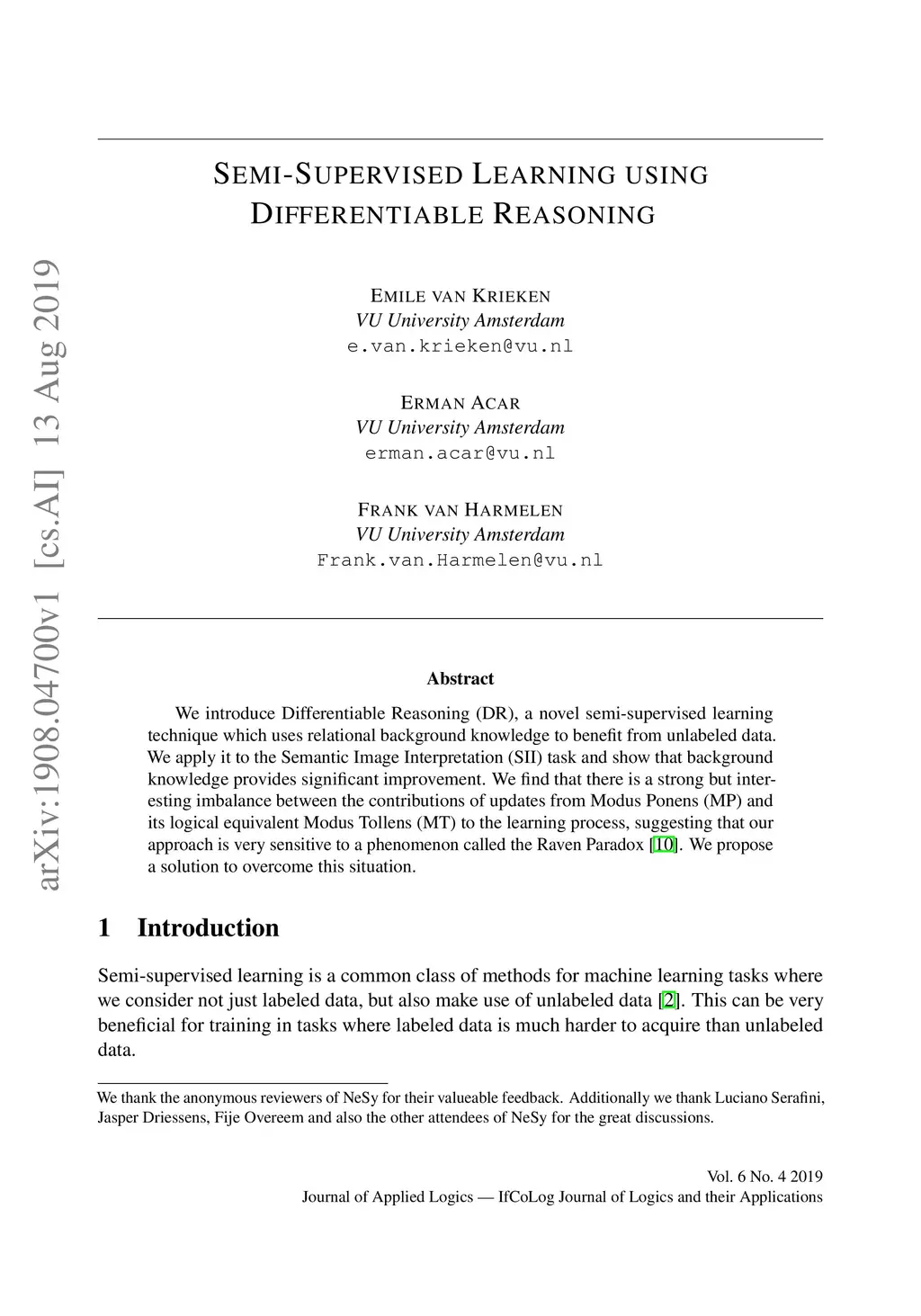 We introduce Differentiable Reasoning (DR), a novel semi-supervised learning technique which uses relational background knowledge to benefit from unlabeled data. We apply it to the Semantic Image Interpretation (SII) task and show that background knowledge provides significant improvement. We find that there is a strong but interesting imbalance between the contributions of updates from Modus Ponens (MP) and its logical equivalent Modus Tollens (MT) to the learning process, suggesting that our approach is very sensitive to a phenomenon called the Raven Paradox. We propose a solution to overcome this situation.