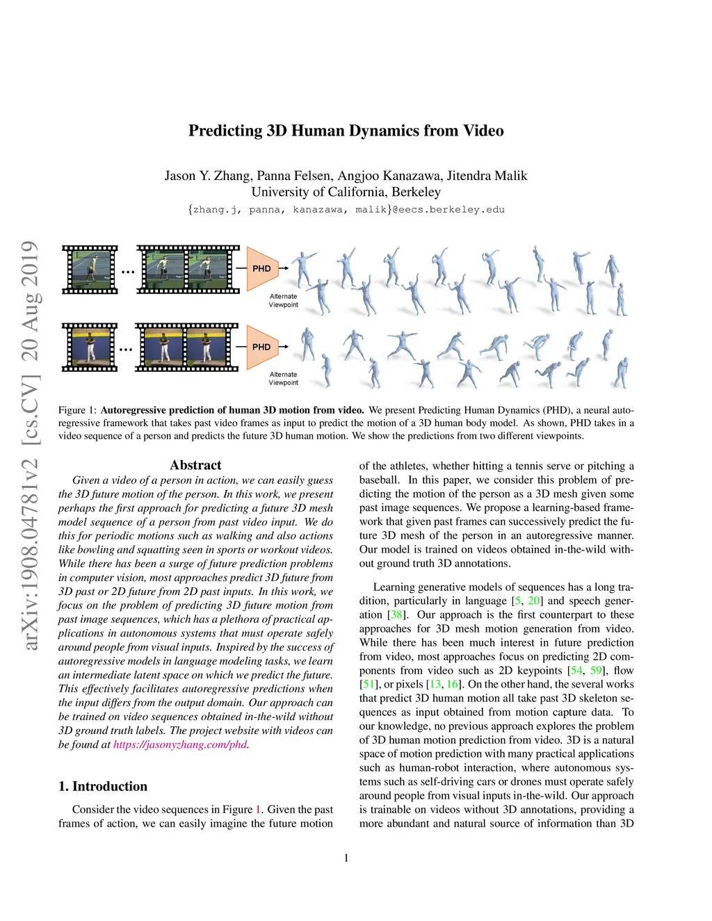 Given a video of a person in action, we can easily guess the 3D future motion of the person. In this work, we present perhaps the first approach for predicting a future 3D mesh model sequence of a person from past video input. We do this for periodic motions such as walking and also actions like bowling and squatting seen in sports or workout videos. While there has been a surge of future prediction problems in computer vision, most approaches predict 3D future from 3D past or 2D future from 2D past inputs. In this work, we focus on the problem of predicting 3D future motion from past image sequences, which has a plethora of practical applications in autonomous systems that must operate safely around people from visual inputs. Inspired by the success of autoregressive models in language modeling tasks, we learn an intermediate latent space on which we predict the future. This effectively facilitates autoregressive predictions when the input differs from the output domain. Our approach can be trained on video sequences obtained in-the-wild without 3D ground truth labels. The project website with videos can be found at https://jasonyzhang.com/phd.