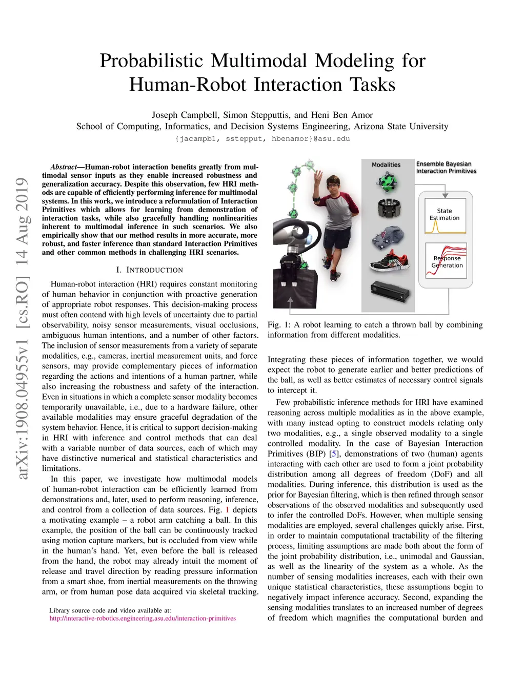 Probabilistic Multimodal Modeling for Human-Robot Interaction Tasks