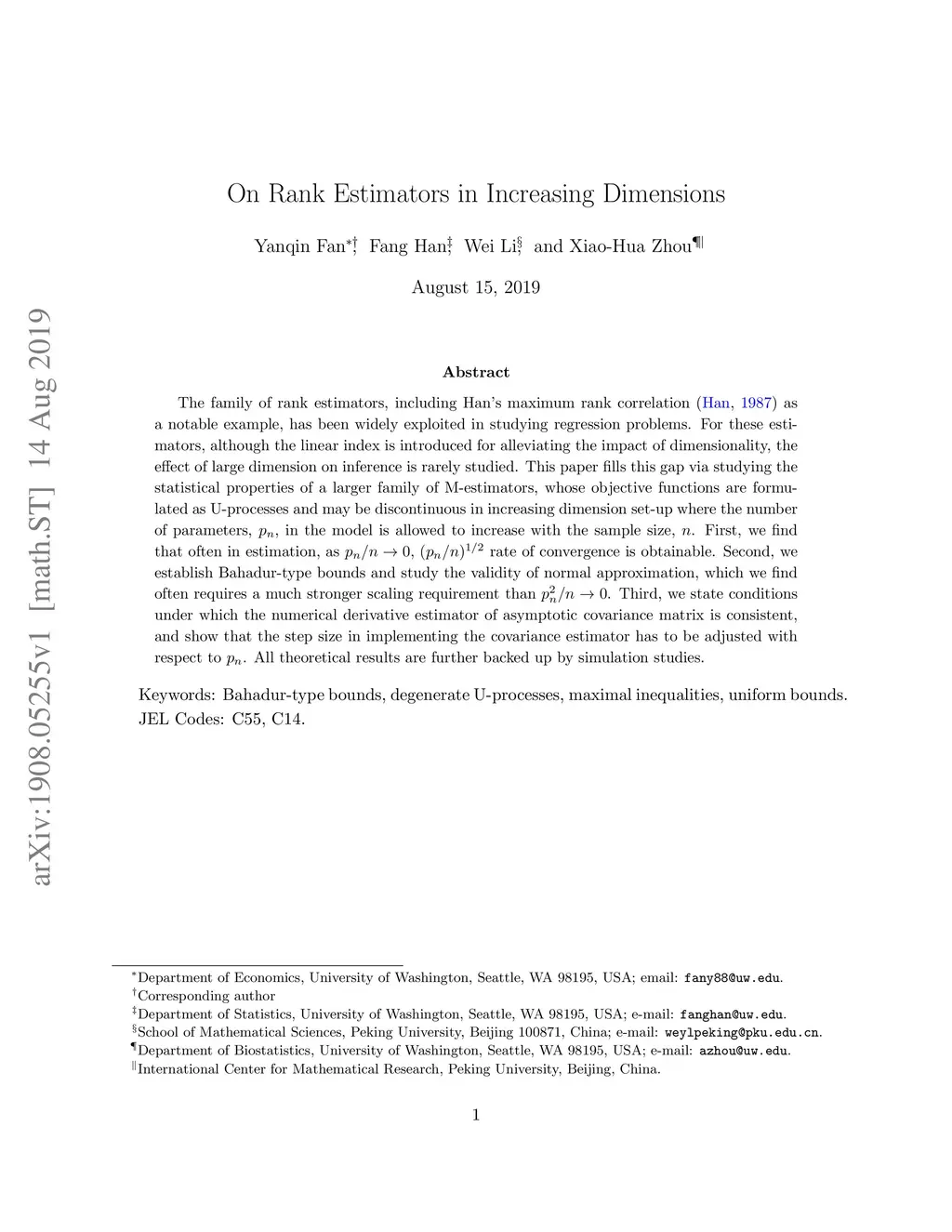 On rank estimators in increasing dimensions