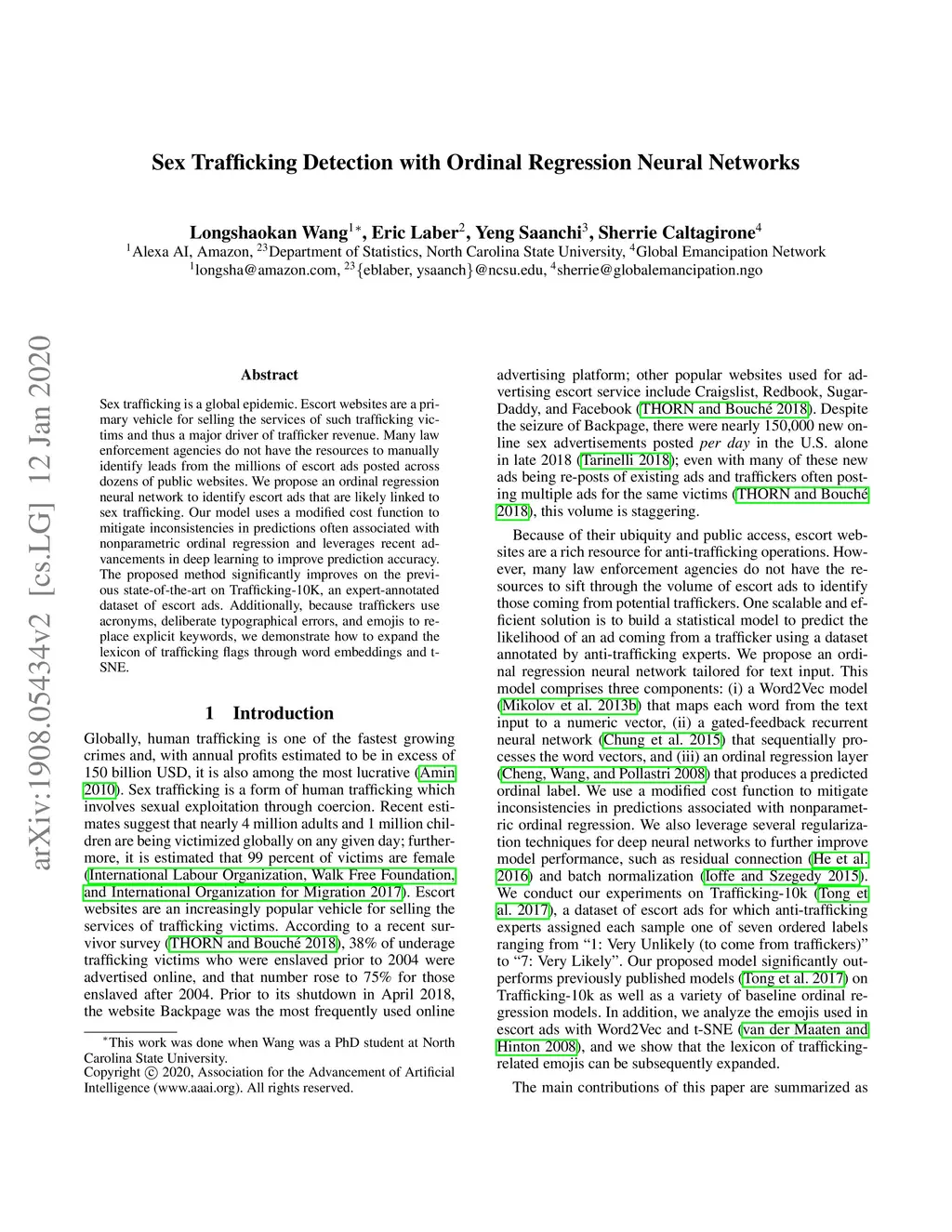 Sex Trafficking Detection with Ordinal Regression Neural Networks