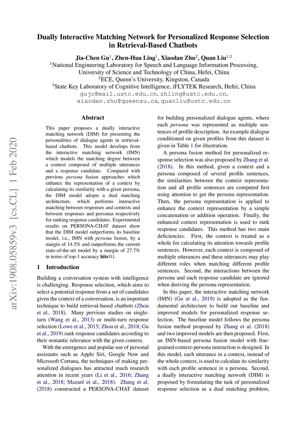 This paper proposes a dually interactive matching network (DIM) for presenting the personalities of dialogue agents in retrieval-based chatbots. This model develops from the interactive matching network (IMN) which models the matching degree between a context composed of multiple utterances and a response candidate. Compared with previous persona fusion approaches which enhance the representation of a context by calculating its similarity with a given persona, the DIM model adopts a dual matching architecture, which performs interactive matching between responses and contexts and between responses and personas respectively for ranking response candidates. Experimental results on PERSONA-CHAT dataset show that the DIM model outperforms its baseline model, i.e., IMN with persona fusion, by a margin of 14.5% and outperforms the current state-of-the-art model by a margin of 27.7% in terms of top-1 accuracy hits@1.