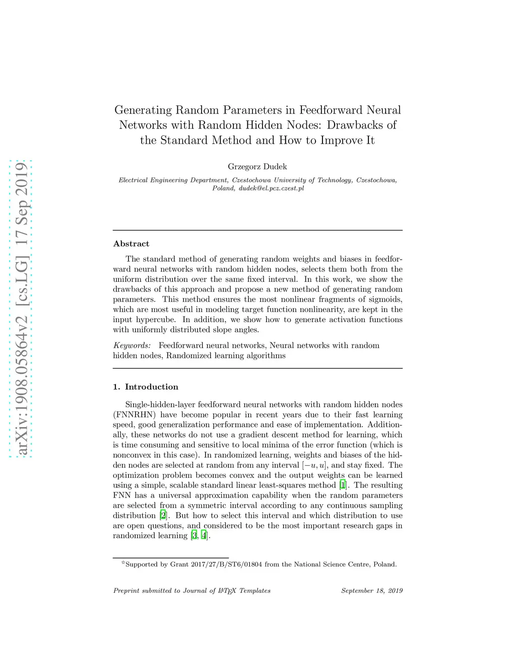 Generating Random Parameters in Feedforward Neural Networks with Random