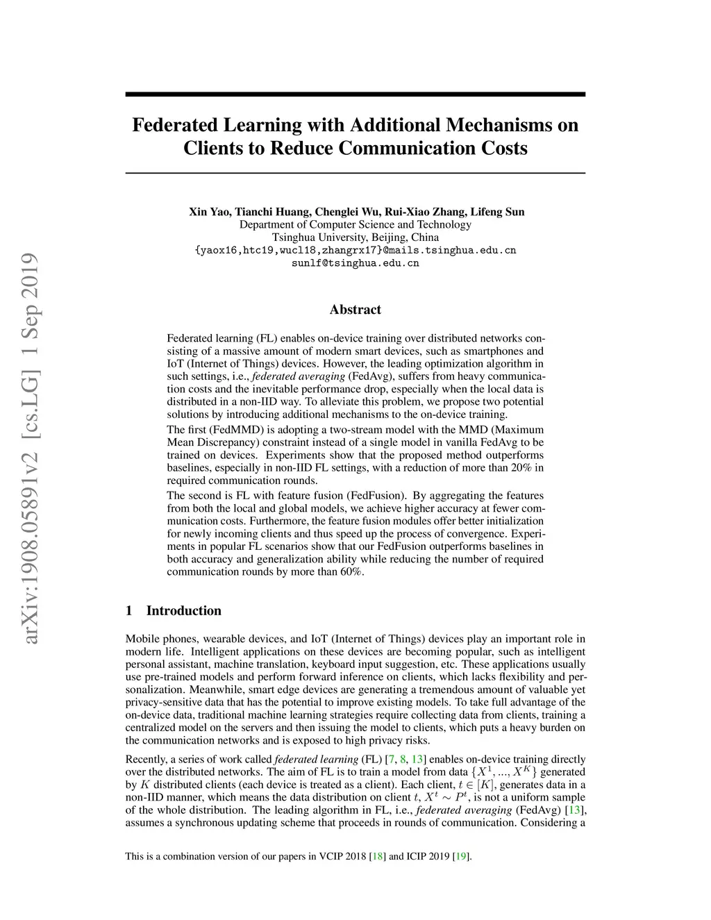 Federated learning (FL) enables on-device training over distributed networks consisting of a massive amount of modern smart devices, such as smartphones and IoT (Internet of Things) devices. However, the leading optimization algorithm in such settings, i.e., federated averaging (FedAvg), suffers from heavy communication costs and the inevitable performance drop, especially when the local data is distributed in a non-IID way. To alleviate this problem, we propose two potential solutions by introducing additional mechanisms to the on-device training. The first (FedMMD) is adopting a two-stream model with the MMD (Maximum Mean Discrepancy) constraint instead of a single model in vanilla FedAvg to be trained on devices. Experiments show that the proposed method outperforms baselines, especially in non-IID FL settings, with a reduction of more than 20% in required communication rounds. The second is FL with feature fusion (FedFusion). By aggregating the features from both the local and global models, we achieve higher accuracy at fewer communication costs. Furthermore, the feature fusion modules offer better initialization for newly incoming clients and thus speed up the process of convergence. Experiments in popular FL scenarios show that our FedFusion outperforms baselines in both accuracy and generalization ability while reducing the number of required communication rounds by more than 60%.