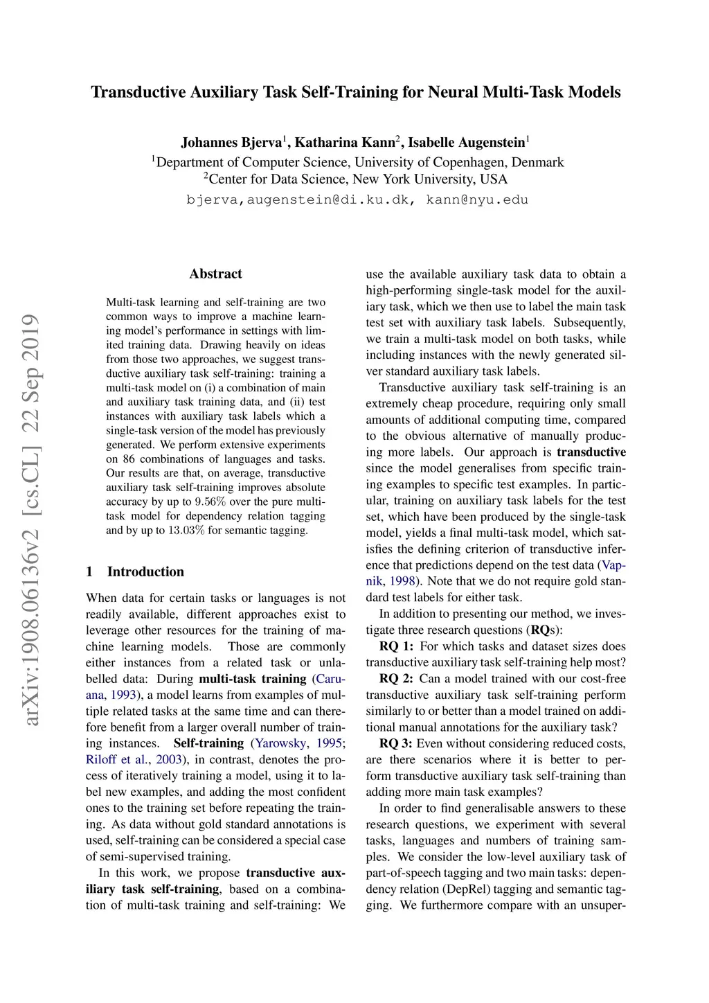Transductive Auxiliary Task Self-Training for Neural Multi-Task Models
