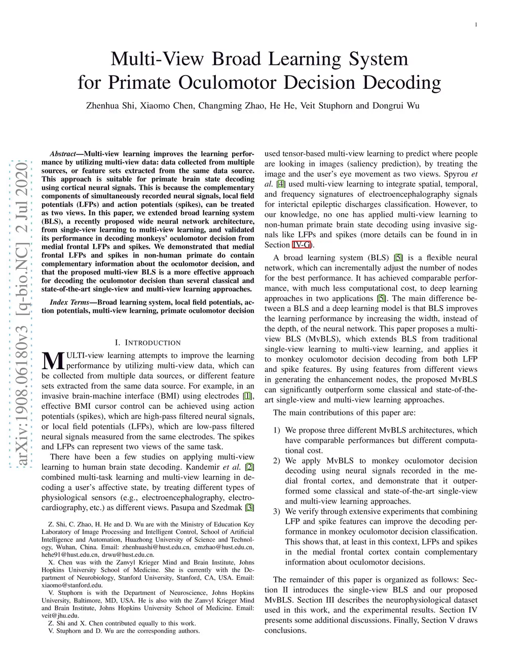 Multi-View Broad Learning System for Primate Oculomotor Decision