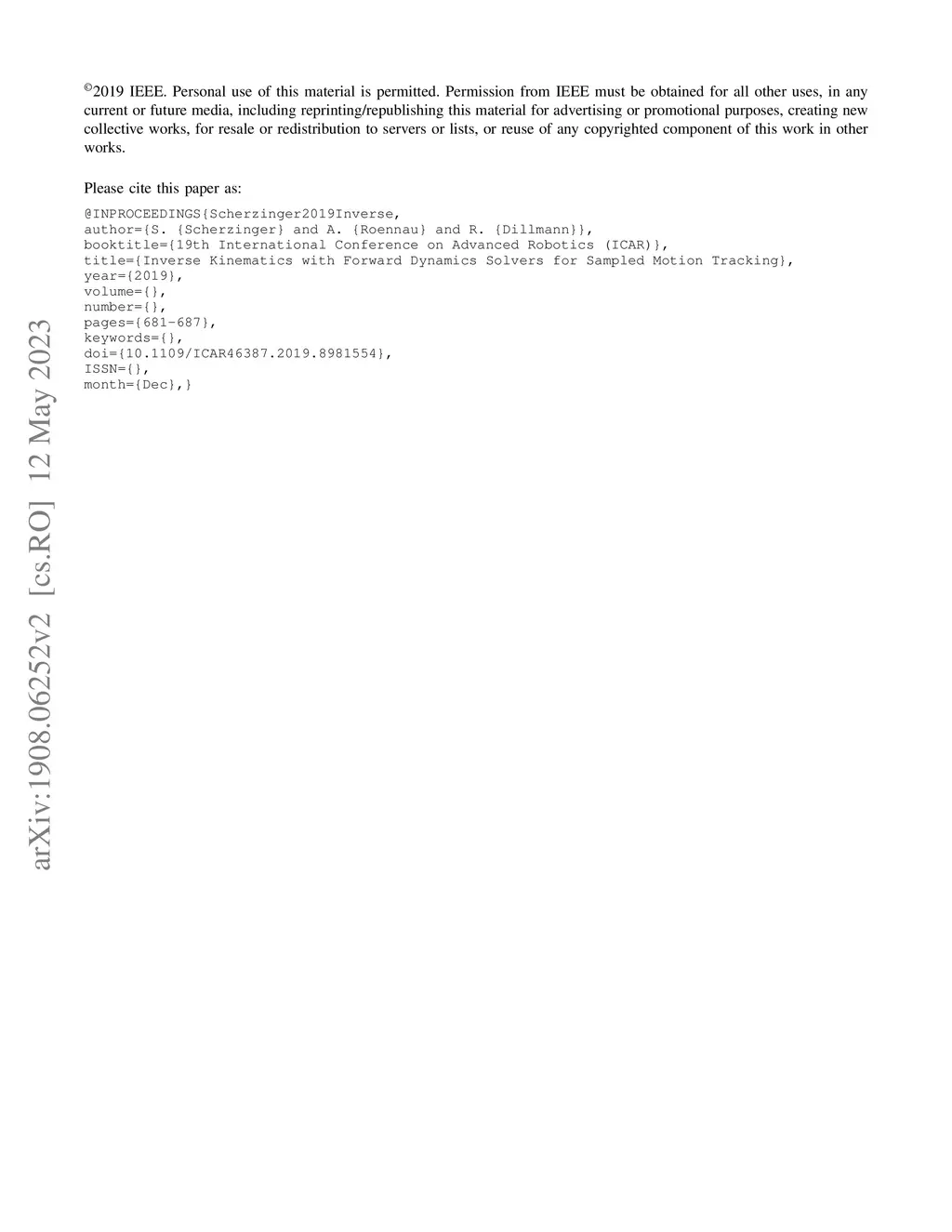 Inverse Kinematics with Forward Dynamics Solvers for Sampled Motion