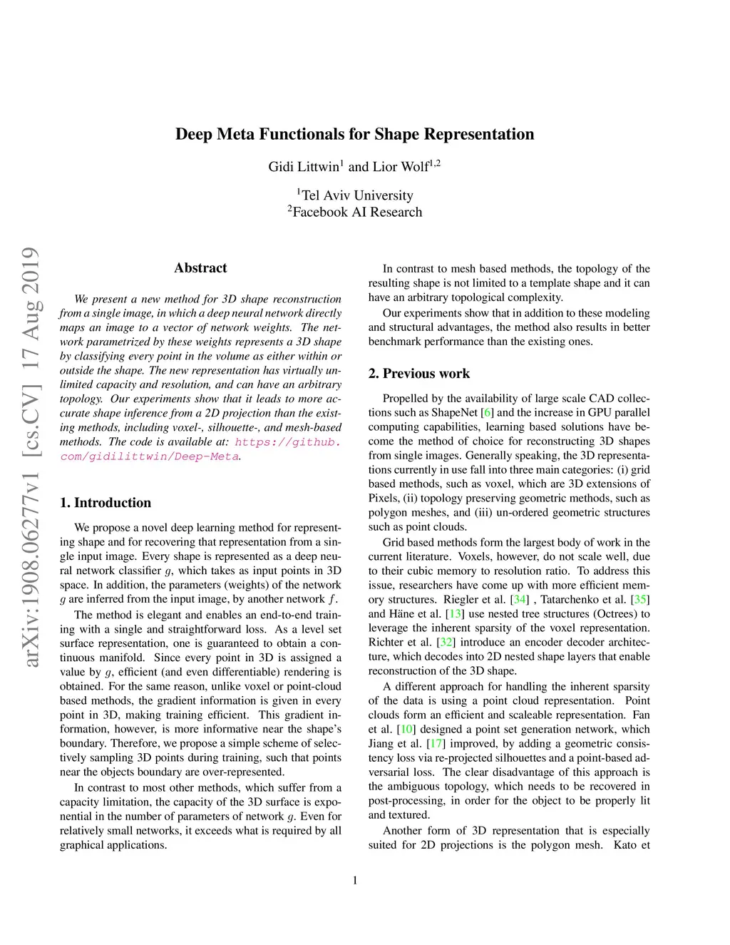 Deep Meta Functionals for Shape Representation
