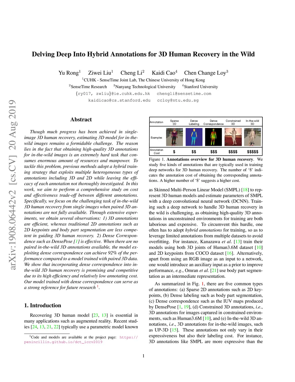 Though much progress has been achieved in single-image 3D human recovery, estimating 3D model for in-the-wild images remains a formidable challenge. The reason lies in the fact that obtaining high-quality 3D annotations for in-the-wild images is an extremely hard task that consumes enormous amount of resources and manpower. To tackle this problem, previous methods adopt a hybrid training strategy that exploits multiple heterogeneous types of annotations including 3D and 2D while leaving the efficacy of each annotation not thoroughly investigated. In this work, we aim to perform a comprehensive study on cost and effectiveness trade-off between different annotations. Specifically, we focus on the challenging task of in-the-wild 3D human recovery from single images when paired 3D annotations are not fully available. Through extensive experiments, we obtain several observations: 1) 3D annotations are efficient, whereas traditional 2D annotations such as 2D keypoints and body part segmentation are less competent in guiding 3D human recovery. 2) Dense Correspondence such as DensePose is effective. When there are no paired in-the-wild 3D annotations available, the model exploiting dense correspondence can achieve 92% of the performance compared to a model trained with paired 3D data. We show that incorporating dense correspondence into in-the-wild 3D human recovery is promising and competitive due to its high efficiency and relatively low annotating cost. Our model trained with dense correspondence can serve as a strong reference for future research.