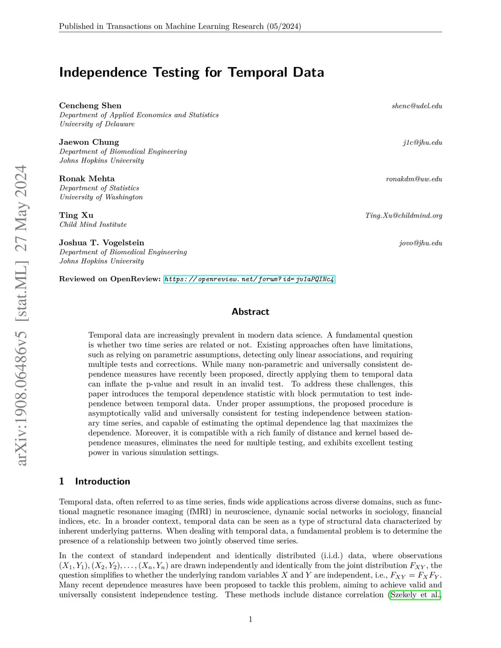 Independence Testing for Temporal Data