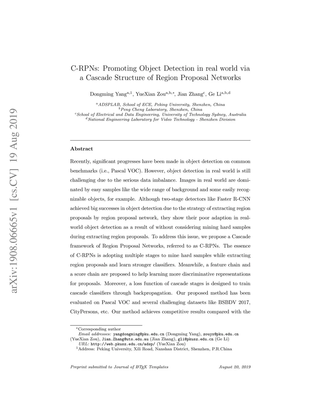 C-RPNs: Promoting Object Detection in real world via a Cascade Structure