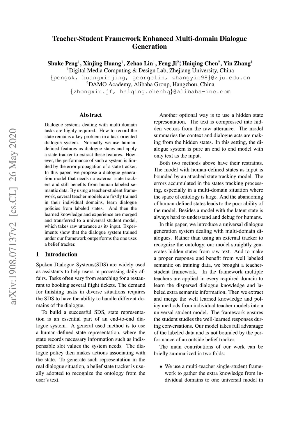 Teacher-Student Framework Enhanced Multi-domain Dialogue Generation
