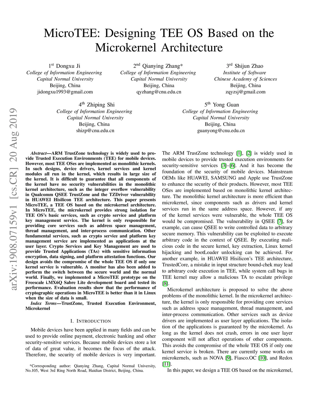 MicroTEE: Designing TEE OS Based on the Microkernel Architecture