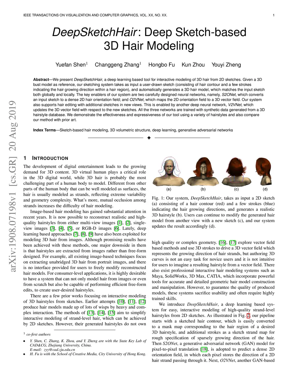 DeepSketchHair: Deep Sketch-based 3D Hair Modeling