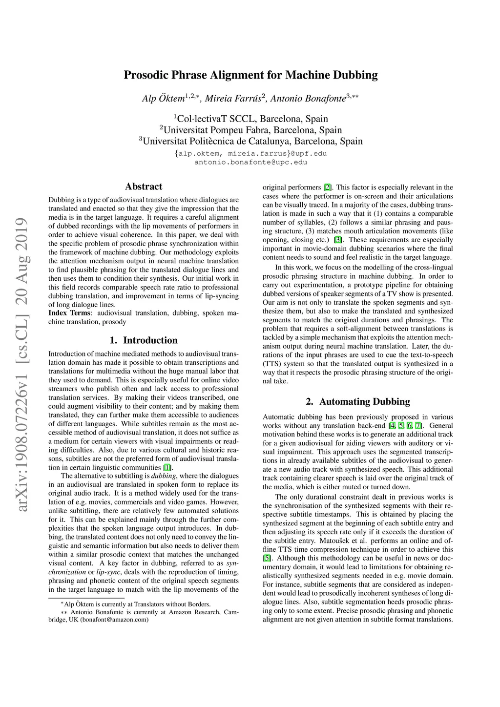 Prosodic Phrase Alignment for Machine Dubbing