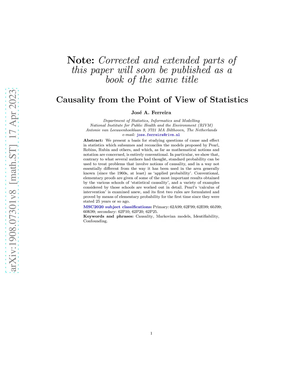 Causality from the Point of View of Statistics