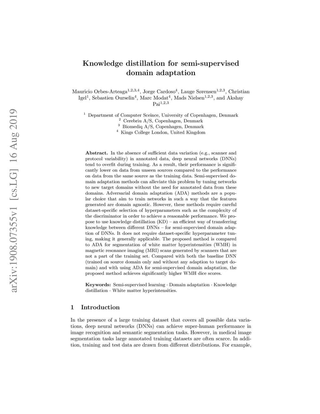 Knowledge distillation for semi-supervised domain adaptation