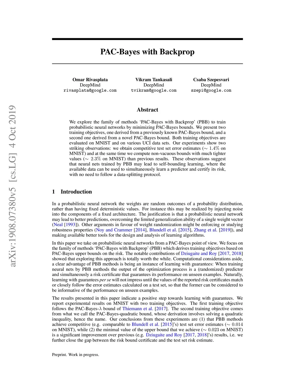 PAC-Bayes with Backprop