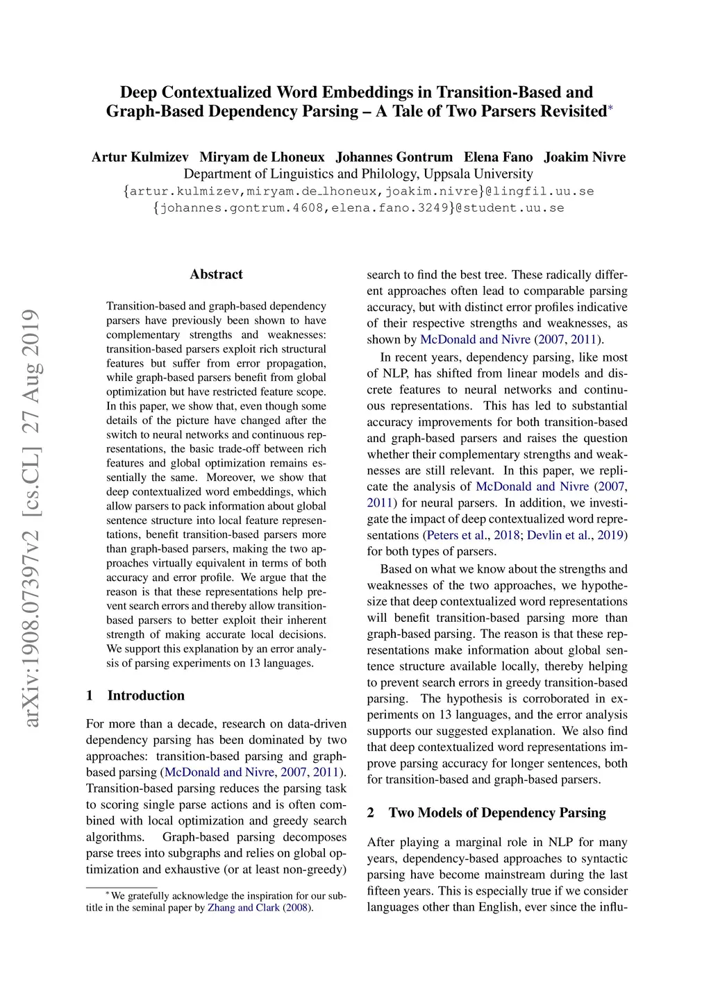 Deep Contextualized Word Embeddings in Transition-Based and Graph-Based