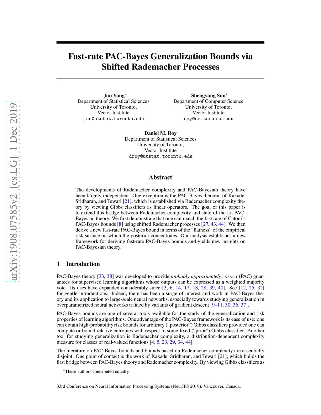 Fast-rate PAC-Bayes Generalization Bounds via Shifted Rademacher
