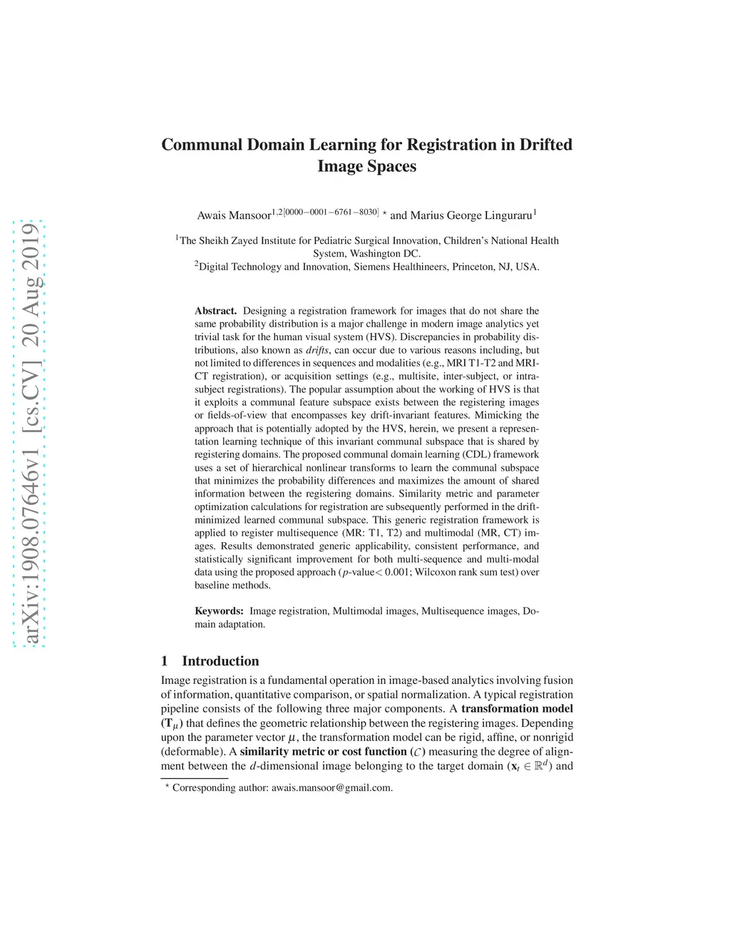 Communal Domain Learning for Registration in Drifted Image Spaces