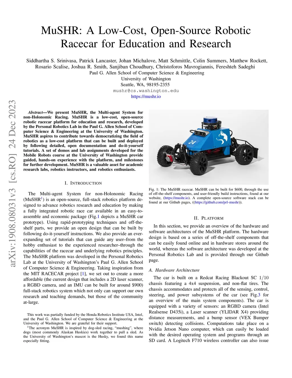 MuSHR: A Low-Cost, Open-Source Robotic Racecar for Education and