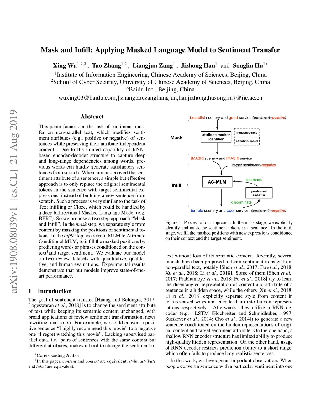 "Mask and Infill" : Applying Masked Language Model to Sentiment Transfer