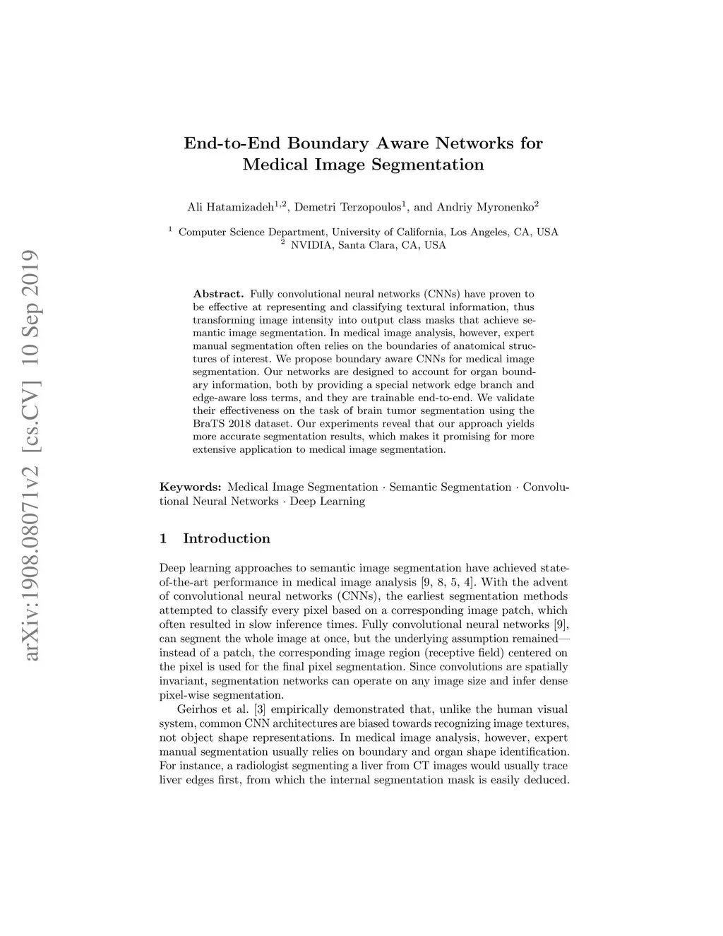 End-to-End Boundary Aware Networks for Medical Image Segmentation