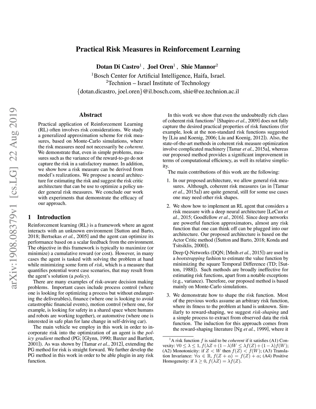Practical application of Reinforcement Learning (RL) often involves risk considerations. We study a generalized approximation scheme for risk measures, based on Monte-Carlo simulations, where the risk measures need not necessarily be \emph{coherent}. We demonstrate that, even in simple problems, measures such as the variance of the reward-to-go do not capture the risk in a satisfactory manner. In addition, we show how a risk measure can be derived from model's realizations. We propose a neural architecture for estimating the risk and suggest the risk critic architecture that can be use to optimize a policy under general risk measures. We conclude our work with experiments that demonstrate the efficacy of our approach.