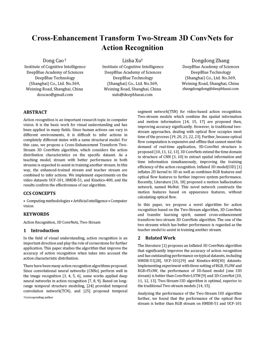 Cross-Enhancement Transform Two-Stream 3D ConvNets for Action