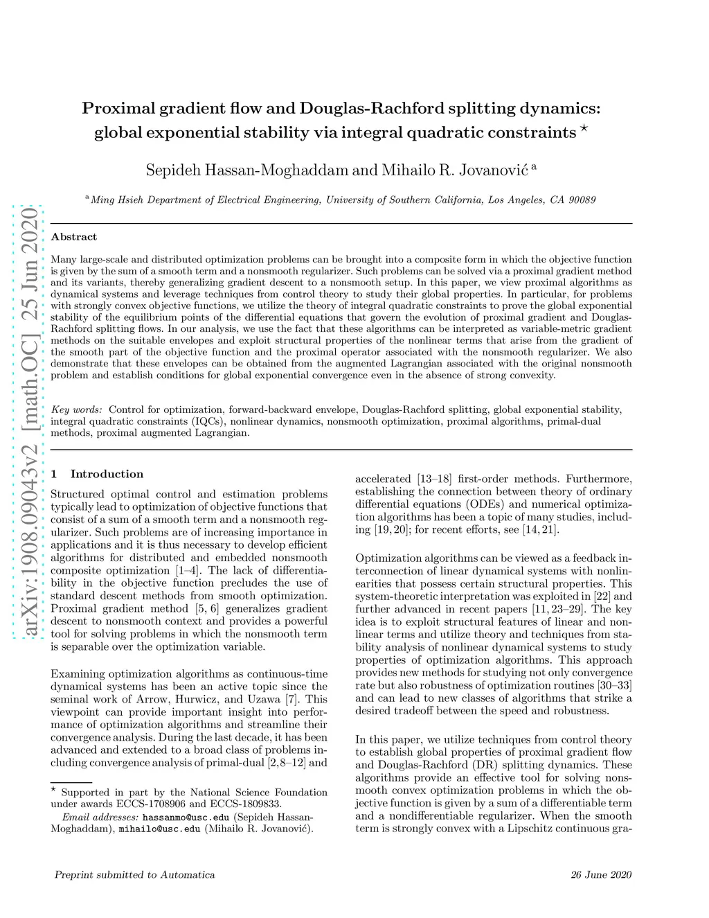 Many large-scale and distributed optimization problems can be brought into a composite form in which the objective function is given by the sum of a smooth term and a nonsmooth regularizer. Such problems can be solved via a proximal gradient method and its variants, thereby generalizing gradient descent to a nonsmooth setup. In this paper, we view proximal algorithms as dynamical systems and leverage techniques from control theory to study their global properties. In particular, for problems with strongly convex objective functions, we utilize the theory of integral quadratic constraints to prove the global exponential stability of the equilibrium points of the differential equations that govern the evolution of proximal gradient and Douglas-Rachford splitting flows. In our analysis, we use the fact that these algorithms can be interpreted as variable-metric gradient methods on the suitable envelopes and exploit structural properties of the nonlinear terms that arise from the gradient of the smooth part of the objective function and the proximal operator associated with the nonsmooth regularizer. We also demonstrate that these envelopes can be obtained from the augmented Lagrangian associated with the original nonsmooth problem and establish conditions for global exponential convergence even in the absence of strong convexity.