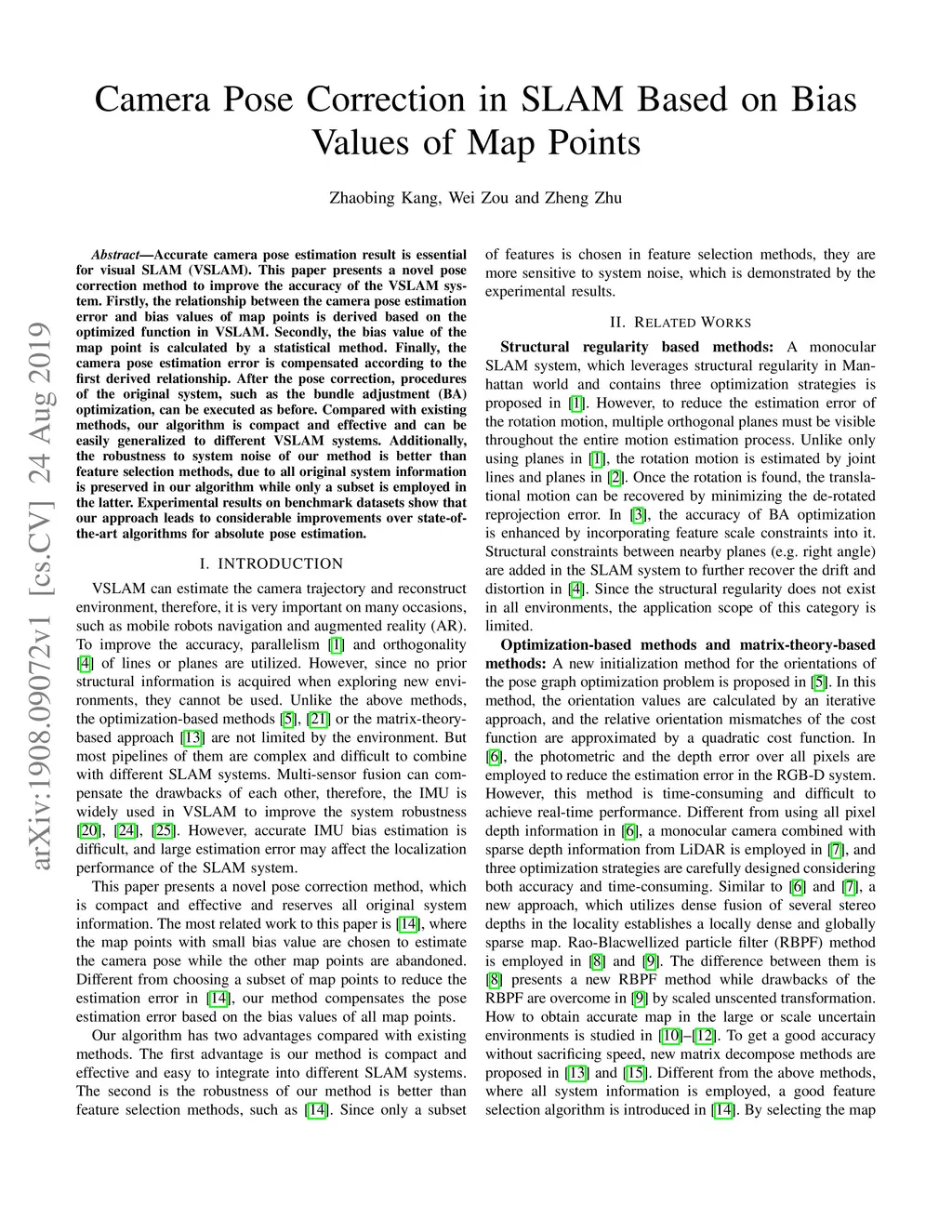 Camera Pose Correction in SLAM Based on Bias Values of Map Points