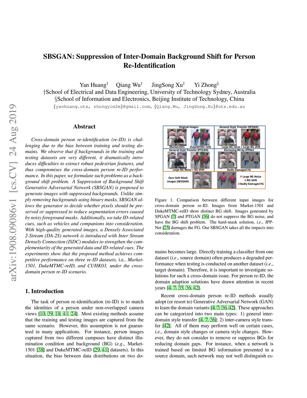 SBSGAN: Suppression of Inter-Domain Background Shift for Person