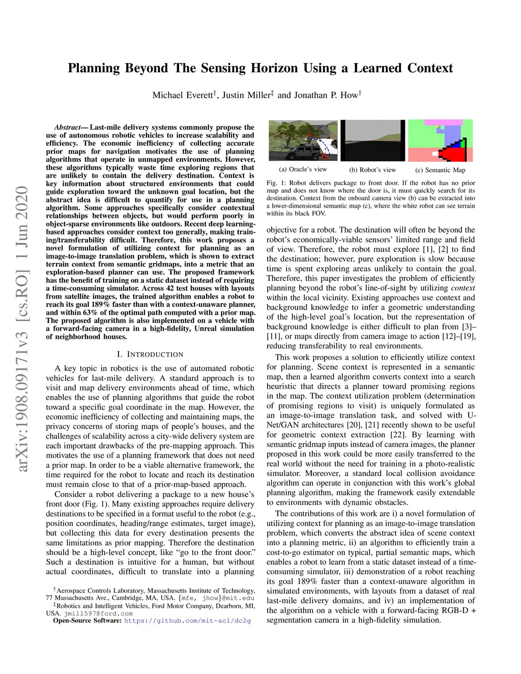 Planning Beyond the Sensing Horizon Using a Learned Context