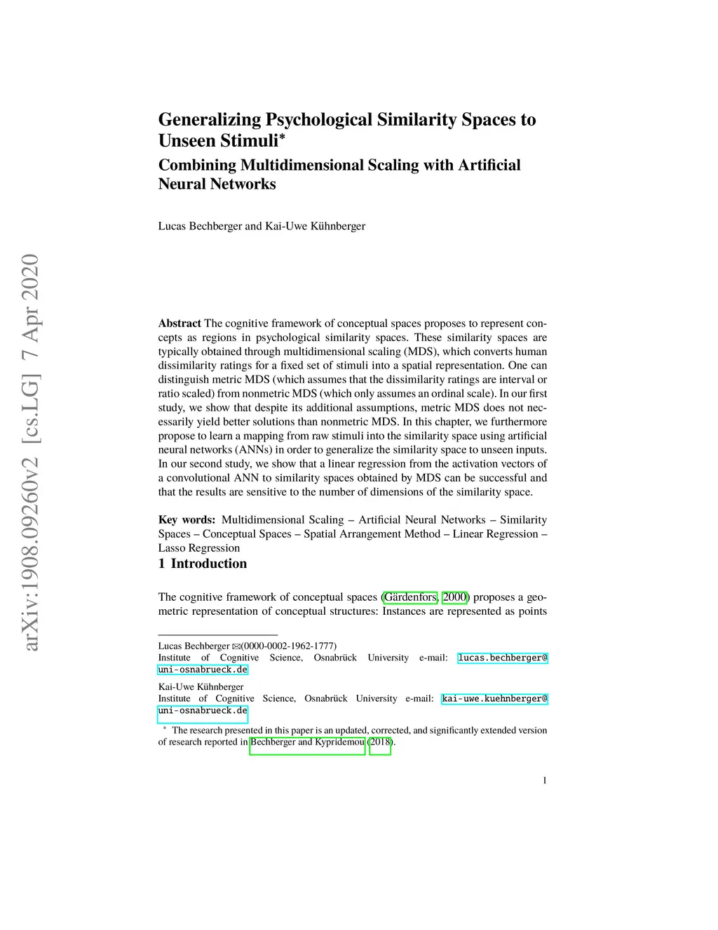 The cognitive framework of conceptual spaces proposes to represent concepts as regions in psychological similarity spaces. These similarity spaces are typically obtained through multidimensional scaling (MDS), which converts human dissimilarity ratings for a fixed set of stimuli into a spatial representation. One can distinguish metric MDS (which assumes that the dissimilarity ratings are interval or ratio scaled) from nonmetric MDS (which only assumes an ordinal scale). In our first study, we show that despite its additional assumptions, metric MDS does not necessarily yield better solutions than nonmetric MDS. In this chapter, we furthermore propose to learn a mapping from raw stimuli into the similarity space using artificial neural networks (ANNs) in order to generalize the similarity space to unseen inputs. In our second study, we show that a linear regression from the activation vectors of a convolutional ANN to similarity spaces obtained by MDS can be successful and that the results are sensitive to the number of dimensions of the similarity space.