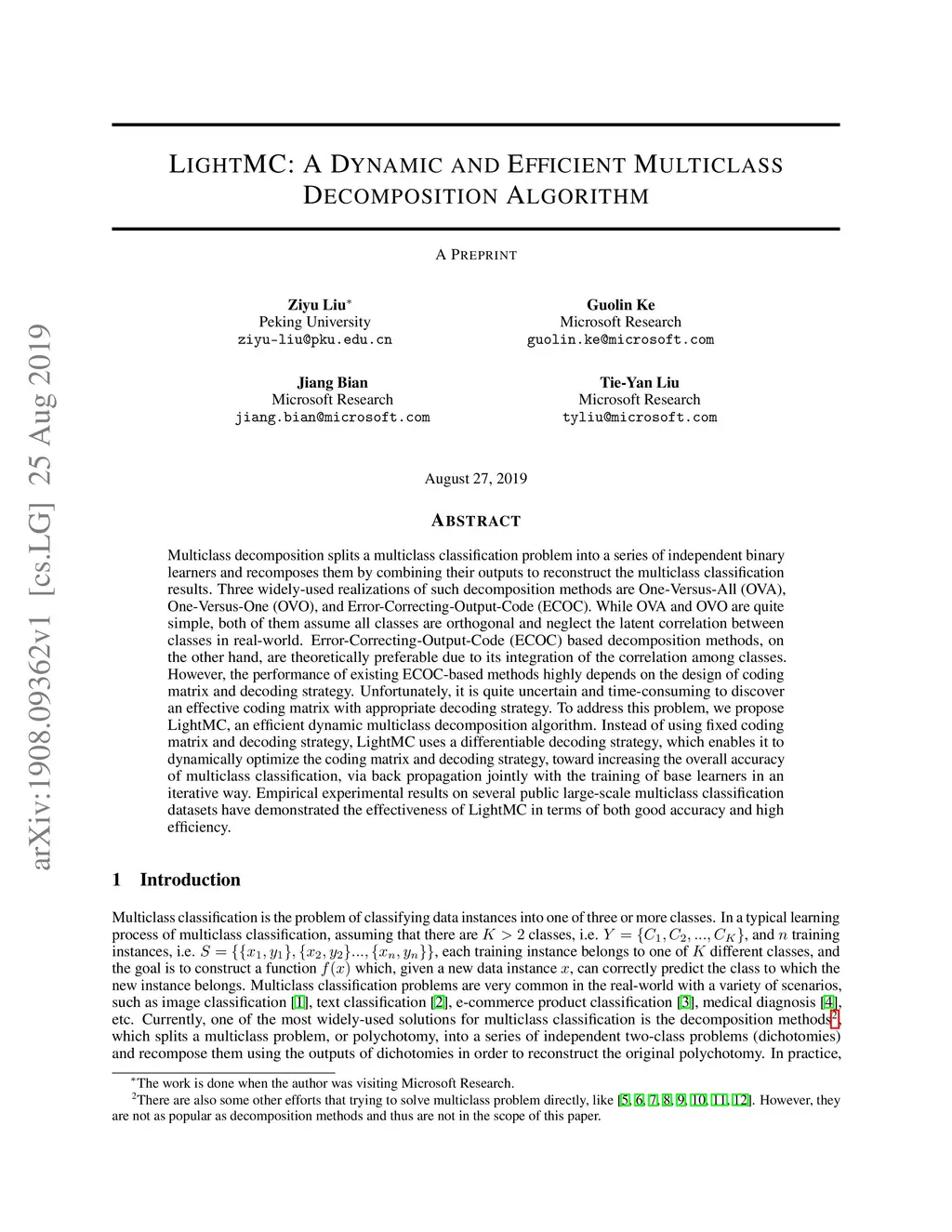 LightMC: A Dynamic and Efficient Multiclass Decomposition Algorithm
