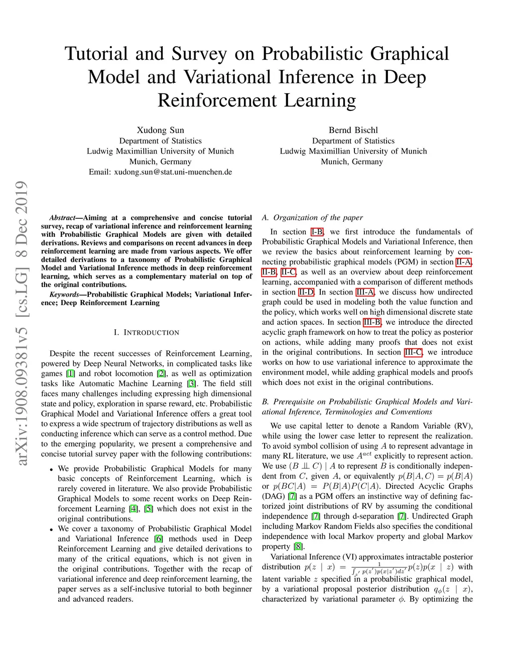 Tutorial and Survey on Probabilistic Graphical Model and Variational