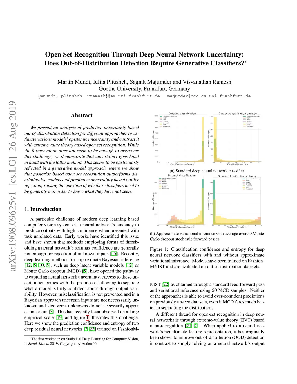 We present an analysis of predictive uncertainty based out-of-distribution detection for different approaches to estimate various models' epistemic uncertainty and contrast it with extreme value theory based open set recognition. While the former alone does not seem to be enough to overcome this challenge, we demonstrate that uncertainty goes hand in hand with the latter method. This seems to be particularly reflected in a generative model approach, where we show that posterior based open set recognition outperforms discriminative models and predictive uncertainty based outlier rejection, raising the question of whether classifiers need to be generative in order to know what they have not seen.
