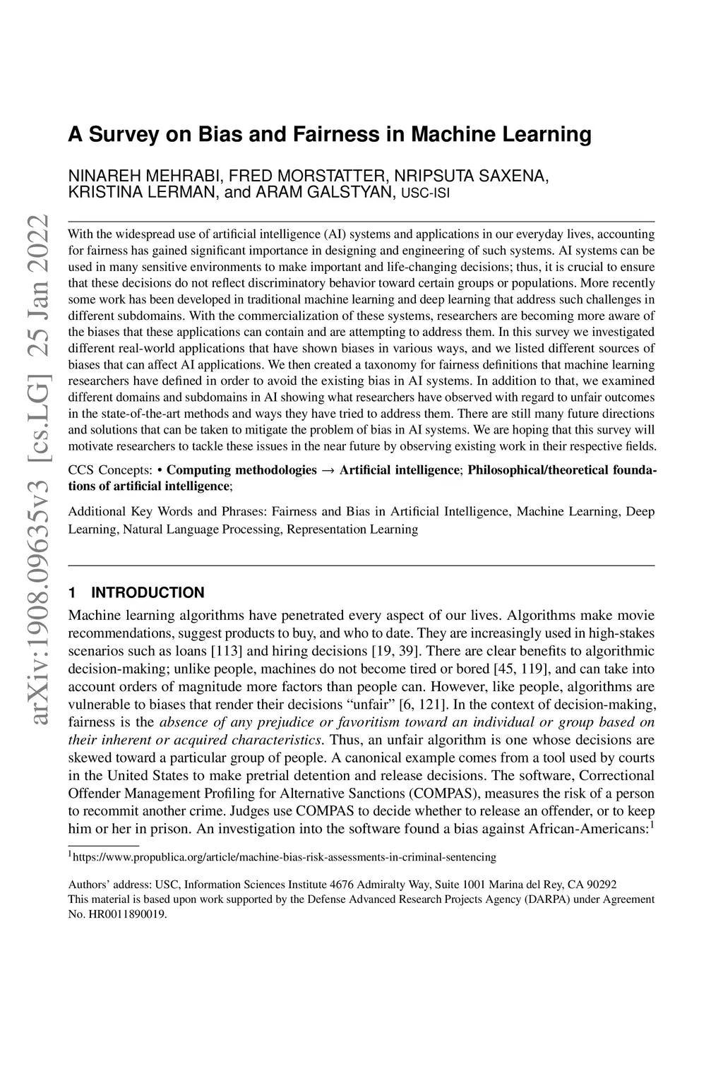 A Survey on Bias and Fairness in Machine Learning