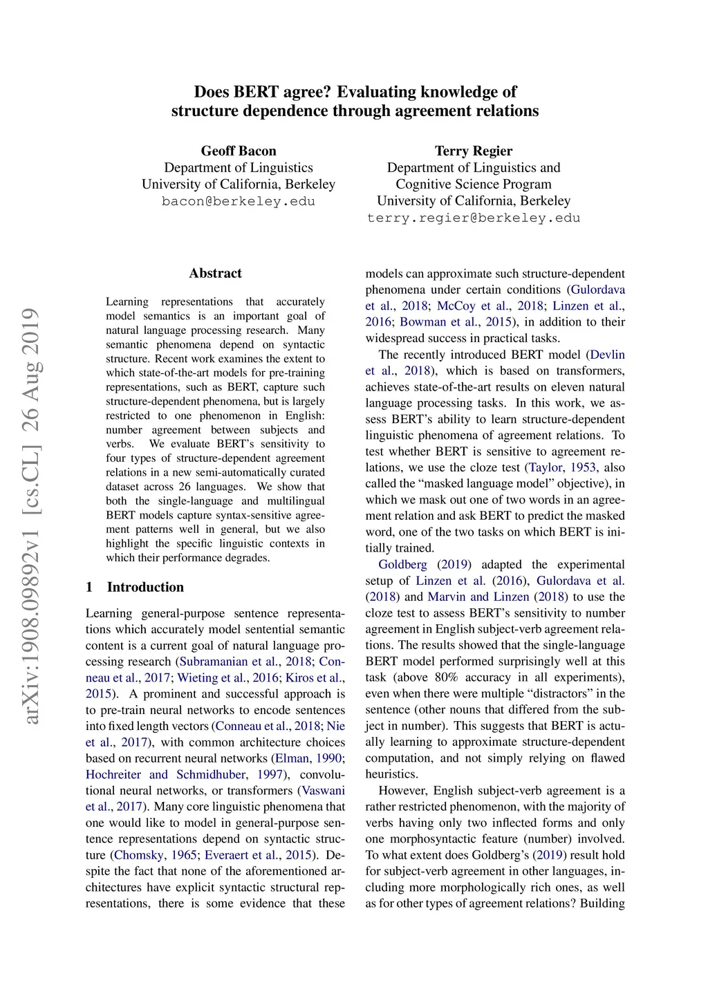 Does BERT agree? Evaluating knowledge of structure dependence through