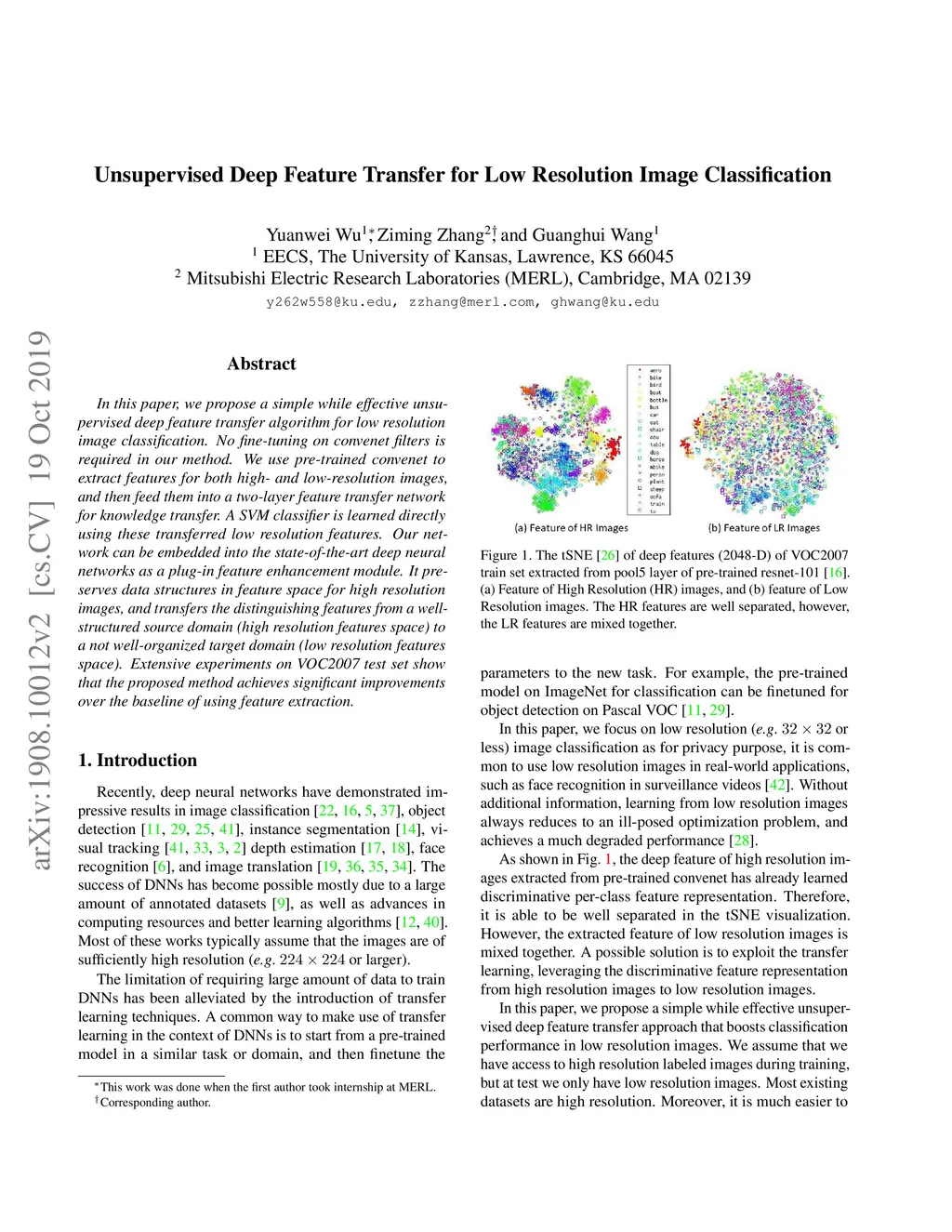 Unsupervised Deep Feature Transfer for Low Resolution Image