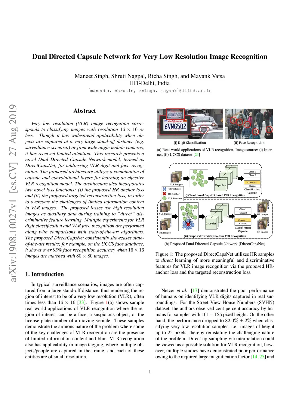 Dual Directed Capsule Network for Very Low Resolution Image Recognition