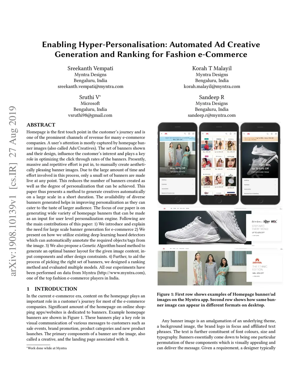 Homepage is the first touch point in the customer's journey and is one of the prominent channels of revenue for many e-commerce companies. A user's attention is mostly captured by homepage banner images (also called Ads/Creatives). The set of banners shown and their design, influence the customer's interest and plays a key role in optimizing the click through rates of the banners. Presently, massive and repetitive effort is put in, to manually create aesthetically pleasing banner images. Due to the large amount of time and effort involved in this process, only a small set of banners are made live at any point. This reduces the number of banners created as well as the degree of personalization that can be achieved. This paper thus presents a method to generate creatives automatically on a large scale in a short duration. The availability of diverse banners generated helps in improving personalization as they can cater to the taste of larger audience. The focus of our paper is on generating wide variety of homepage banners that can be made as an input for user level personalization engine. Following are the main contributions of this paper: 1) We introduce and explain the need for large scale banner generation for e-commerce 2) We present on how we utilize existing deep learning based detectors which can automatically annotate the required objects/tags from the image. 3) We also propose a Genetic Algorithm based method to generate an optimal banner layout for the given image content, input components and other design constraints. 4) Further, to aid the process of picking the right set of banners, we designed a ranking method and evaluated multiple models. All our experiments have been performed on data from Myntra (http://www.myntra.com), one of the top fashion e-commerce players in India.