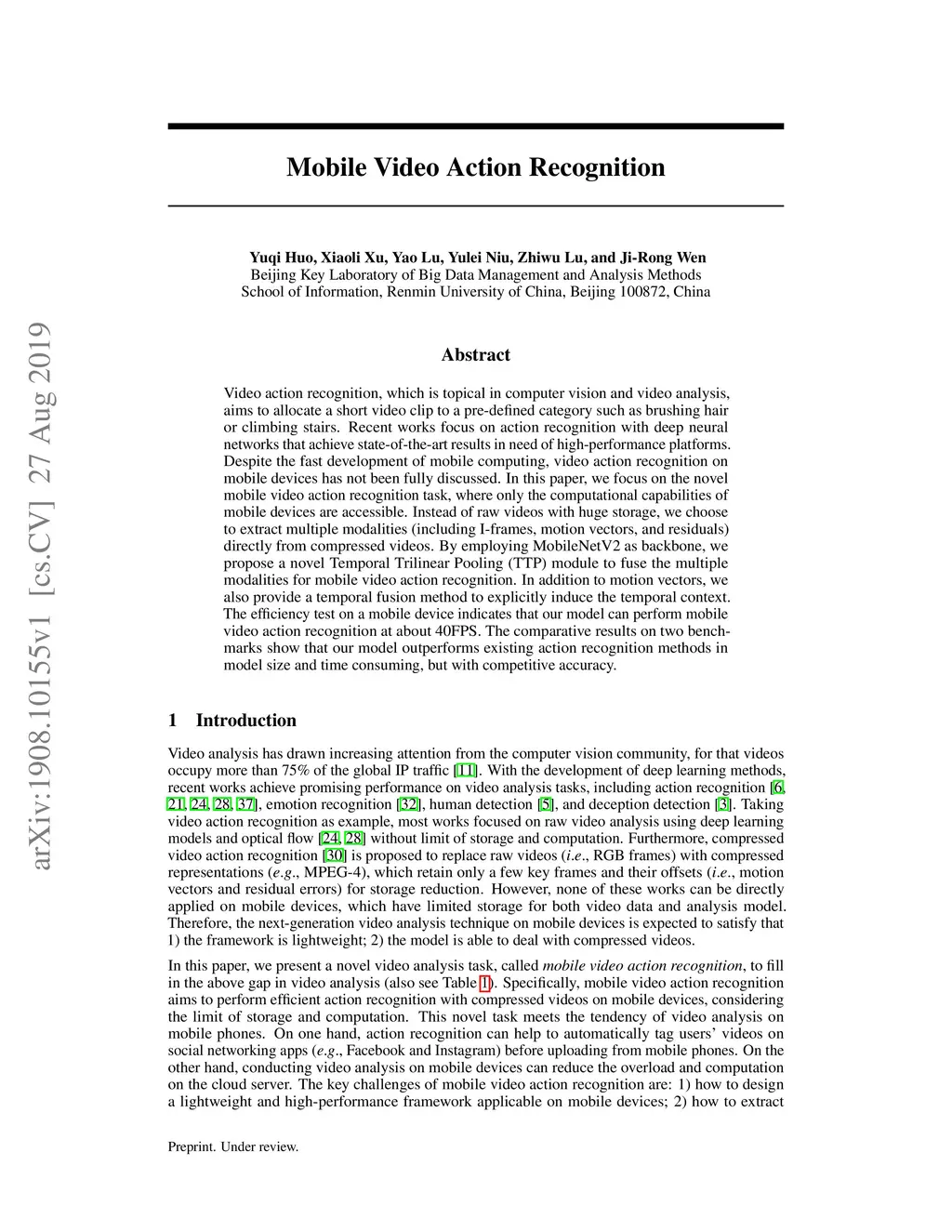 Mobile Video Action Recognition